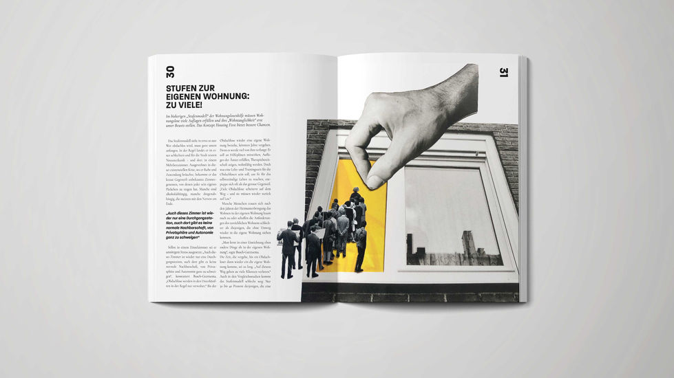 The quarterly magazine Kulissen takes readers behind the scenes to shed light on important social issues. Developed as my bachelor’s project, it is a fictional concept designed to explore creative ways of addressing societal challenges. Its first edition focuses on the underlying causes of homelessness. By providing knowledge that challenges stigma, Kulissen aims to foster openness and a willingness to help.